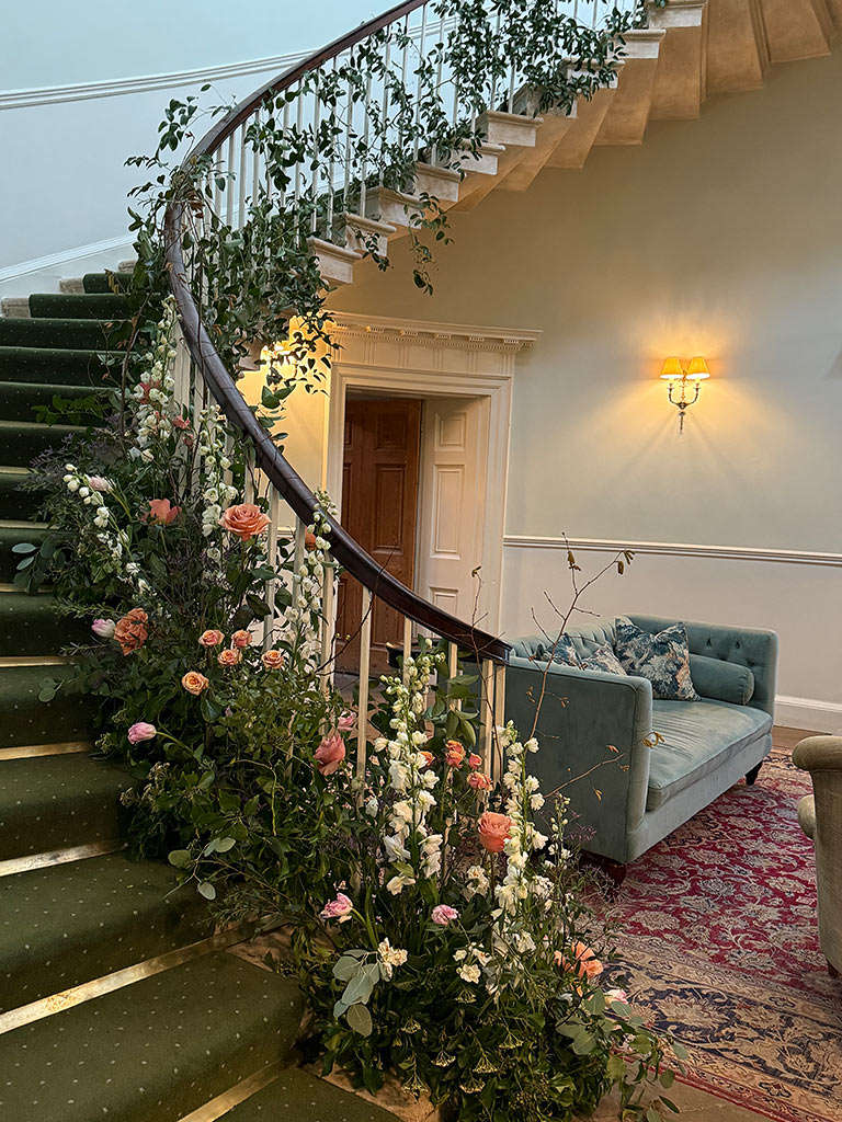 Many of the flowers were sourced from British growers, including Songbird Meadow in North Yorkshire and Smith & Munson in Lincolnshire, layered with carefully chosen seasonal flowers from Florismart. This balance allowed the design to remain seasonal while still offering depth and variation.