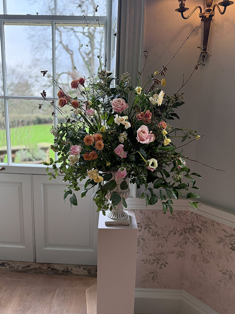 Rather than pushing the season towards spring, the floral design embraced what January does best: softness, restraint, and a quiet sense of optimism. The aim was to create a seasonal winter wedding flower scheme that felt confident, considered, and completely in tune with the venue.